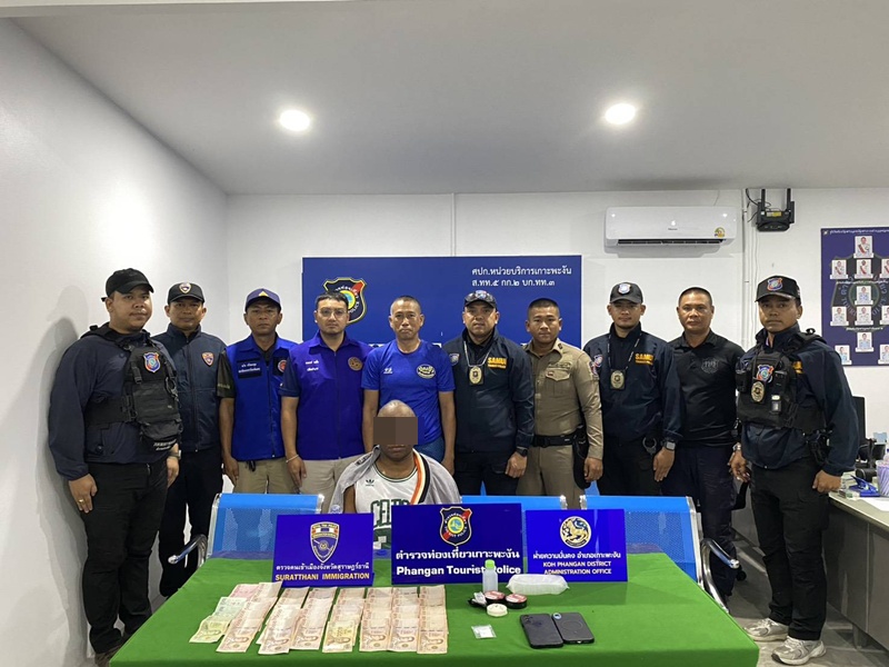 วันนี้ ( 15 มกราคม 2569 ผู้สื่อข่าวรายงานว่า ภายใต้การอำนวยการสั่งการของ พ.ต.อ.ณรภณ วัฒนะกรทวี ผกก.2 บก.ทท.3 พร้อม พ.ต.ท.เจริญชัย บุญเกลี้ยง สว.กก.สืบสวน ภ.จว.สุราษฎร์ธานี ร่วมกับตำรวจ สภ.เกาะพะงัน ฝ่ายปกครองอำเภอเกาะพะงัน บูรณาการ หลังตำรวจท่องเที่ยว ได้รับแจ้งจากสายลับ ว่า มีชายชาวไนจีเรีย มีพฤติกรรมค้ายาเสพติด เเละเป็นหนึ่งในเป้าหมาย ที่ทางเจ้าหน้าที่ติดตามตัว กำลังขับรถยนต์มิตซูบิชิ มิราจ เก๋งสีขาว ทะเบียน 5 ขศ-8311 กทม มีชายต่างชาติ ขับมาบนถนนบริเวณห้างร้านสะดวกซื้อแห่งหนึ่ง หมู่ 1 ตำบลเกาะพะงัน อำเภอเกาะพะงัน จังหวัดสุราษฎร์ธานี