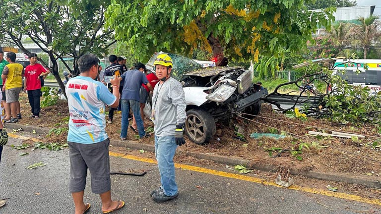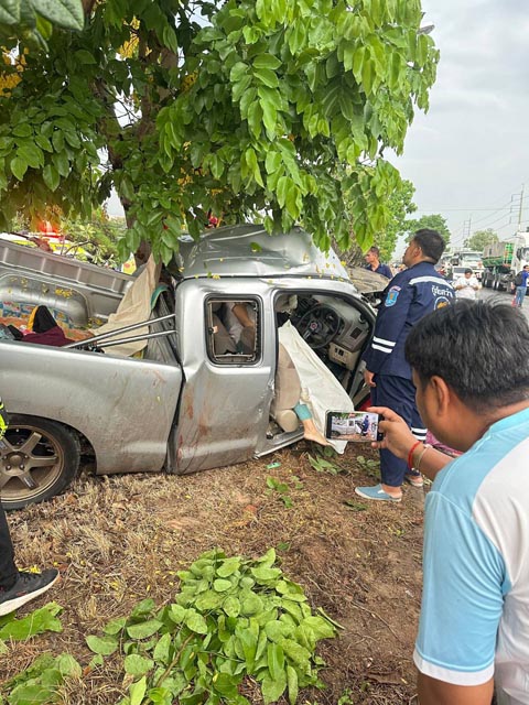 ศูนย์ข่าวนครราชสีมา- เศร้าสลด! เด็กหญิง 5 ขวบถามกู้ภัย พ่อกับแม่หนูเสียชีวิตหรือยัง หลังรถกระบะเสียหลักพุ่งชนอัดติดต้นไม้พังยับ ดับ 2 ศพ บาดเจ็บ 1 รายเป็นลูกน้อยติดอยู่ภายในรถรอดชีวิตหวุดหวิด บน ถ.มิตรภาพ โคราช ท่ามกลางฝนตกหนัก คาดฝนตกถนนลื่นทำรถเสียหลักพุ่งชนต้นไม้ข้างทางอย่างรุนแรงจนเกิดเหตุสลดดังกล่าว