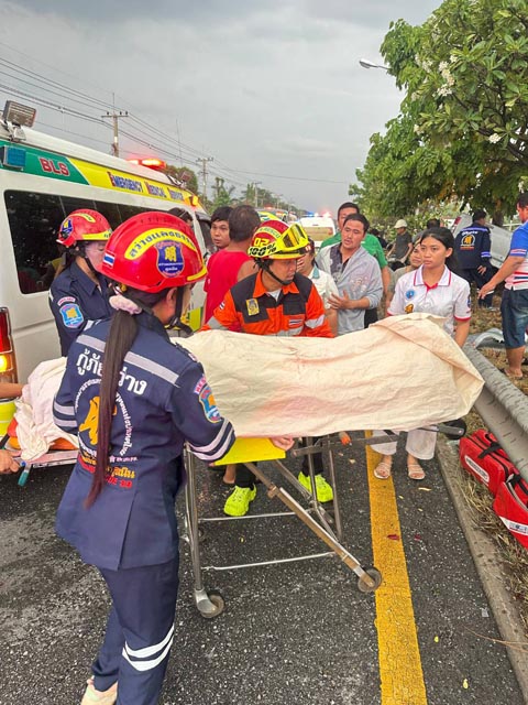 ในที่เกิดเหตุพบรถกระบะ ยี่ห้อ โตโยต้า รุ่น วีโก้ แค็บ สีบรอนซ์เงิน หมายเลขทะเบียน บษ 1141 สระบุรี สภาพด้านหน้าพังยับเยิน อัดติดกับต้นไม้ข้างทาง ภายในรถมีผู้บาดเจ็บติดคาซากรวม 3 ราย เจ้าหน้าที่ต้องใช้เครื่องตัดถ่างงัดซากรถเพื่อช่วยเหลืออย่างเร่งด่วน ท่ามกลางฝนที่ตกลงมาอย่างหนัก ทำให้การปฏิบัติงานเป็นไปด้วยความยากลำบาก
