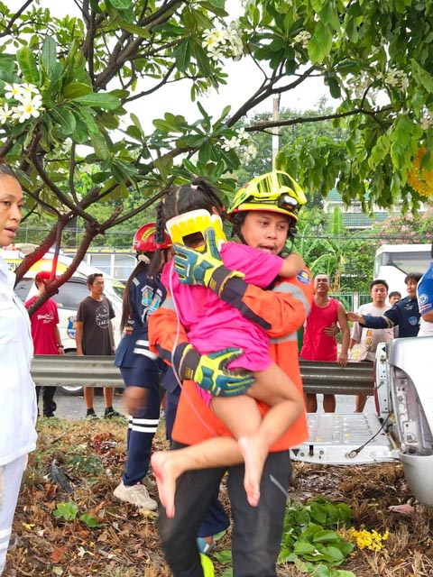 ระหว่างการช่วยเหลือ เด็กหญิงผู้รอดชีวิตอยู่ในอาการตกใจอย่างหนัก ได้ถามเจ้าหน้าที่กู้ภัยด้วยความหวาดกลัวว่า “พ่อกับแม่หนูเสียชีวิตหรือยัง แล้วหนูจะเสียชีวิตไหม” สร้างความสะเทือนใจให้กับเจ้าหน้าที่เป็นอย่างมาก โดยเจ้าหน้าที่ได้ช่วยกันปลอบขวัญจนสามารถนำตัวเด็กออกมาจากรถได้อย่างปลอดภัย