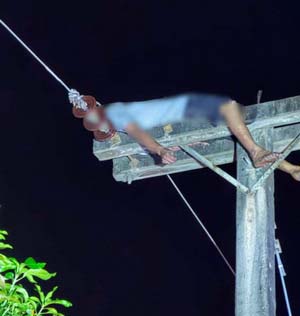 เมื่อเวลา 03.00 น. วันนี้ (29 เม.ย.) ร.ต.อ.พรชัย ดลรัศมี รองสารวัตร (สอบสวน) สภ.ศรีสงคราม จ.นครพนม รับแจ้งมีเหตุชายคลั่งปีนเสาไฟฟ้าแรงสูงในพื้นที่บ้านข่า ต.บ้านข่า อ.ศรีสงคราม โดยมีชาวบ้านลุ้นระทึก พยายามเกลี้ยกล่อมให้ลงแต่ไม่เป็นผล สุดท้ายเห็นชายถูกไฟฟ้าช็อตไฟลุกท่วมบนเสาไฟฟ้า ศีรษะขาดกระเด็นตกพื้น ภายหลังแจ้งเจ้าหน้าที่ได้ประสานทีมกู้ภัยสายธาร อ.ศรีสงคราม พร้อมแจ้งเจ้าหน้าที่การไฟฟ้าส่วนภูมิภาค ตัดกระแสไฟ นำรถกระเช้าขึ้นเสาไฟกู้ร่างผู้เสียชีวิตลงมา