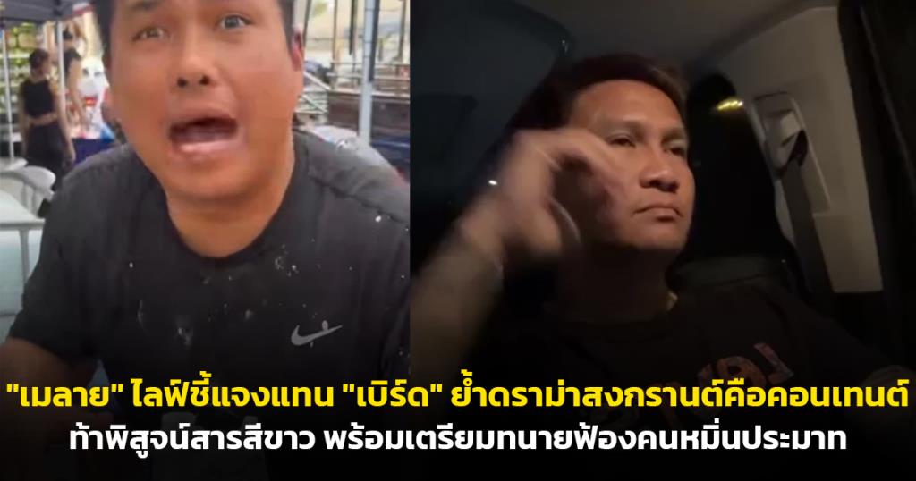 "เมลาย รัชดา" บอสใหญ่แก๊งน้ำไม่อาบ ไลฟ์สดเดือดฟาดกลับชาวเน็ตแบบจัดหนักปมดรามา "เบิร์ด วันว่างว่าง" ทำคอนเทนต์ป้ายยาแนวช่วงสงกรานต์ ซัดแรง "โซเชียลไม่ใช่ศาล อย่ามาตัดสิน!" ท้าเอาหลักฐานมาโชว์ว่าสารสีขาวคืออะไร พร้อมขู่ฟ้องเรียบเพจหิวแสงที่ด่าเอายอดวิว ยันไม่ได้หนีหมายจับแค่ไปมูเตลูที่ฮ่องกง ก่อนทิ้งท้ายวาทะแทงใจดำ "นี่แหละประเทศไทย คนจนแหย่ไข่มดแดงติดคุก แต่คนมีเงินเอาตัวรอดได้!"